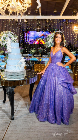 Cores elegantes que transmitem frescor e sofisticação, ideais para debutantes modernas. Inclui azul claro, royal, marinho, verde menta, oliva, esmeralda, lavanda e lilás.